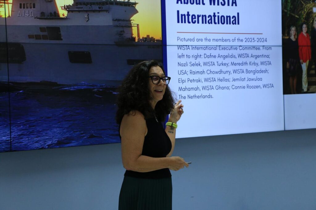 Além de Ana Paula Costa, outras representantes da WISTA Brasil estiveram presentes no evento, incluindo a Vice-Presidente Flavia Melo e a Diretora de Relacionamento Institucional, Fabiana Durant. Esta última também ocupa o importante cargo de Embaixadora Marítima da Boa Vontade da IMO no Brasil, reforçando o compromisso da associação em colaborar com organizações internacionais para promover o desenvolvimento sustentável e a igualdade de gênero no setor marítimo.